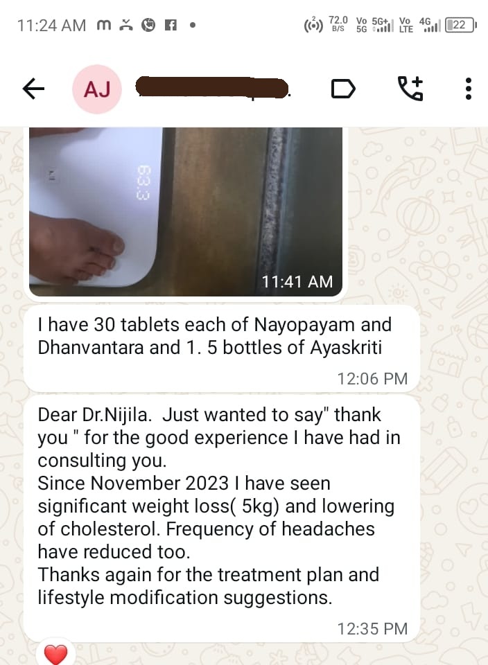 Athul AniHi, I could see a drastic change of my body after snehapanam and virechana, I almost loss my body weight 6 kg that I was suffered to reduce earlier then after followed the proper diet and meds my digestion, certain allergies in the skin and metabolism too improved. I was unsure about root cause of the gut disorder and pcos related stress and anxiety that I have been suffering for the past couple of years but after the treatment I could feel the body changes gradually improved a lot.