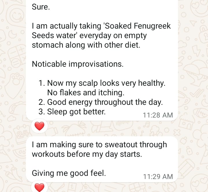 After snehapanam (done in Mar end), we could see good change in the dandruff flakes. It was in good control for quite some time even without using hair pack. Regarding fertility issues, the entire course of treatment was really helpful. We could see drastic changes in semen quality & was able to conceive after 2 months of snehapanam.