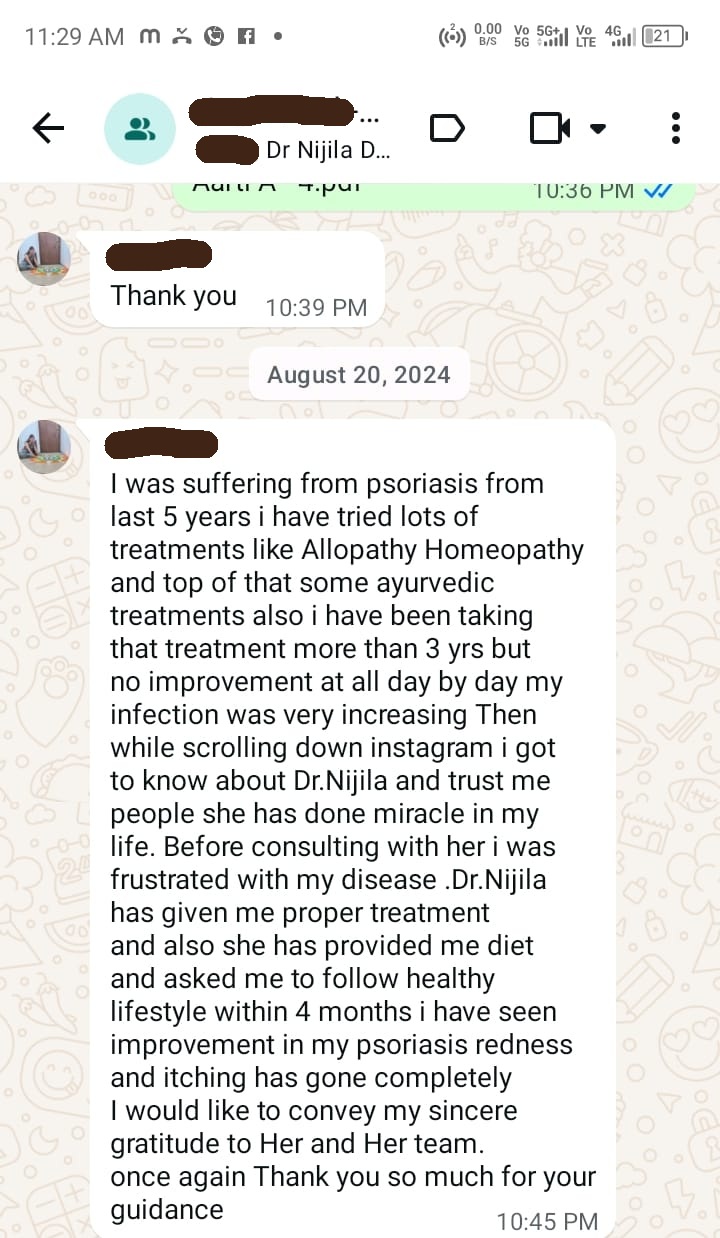 chandani guptaI am 34 y years old, I have been having severe migraine issues for more than 20 years, since I was 11. It severely affected my studies and my life. I would be getting attacks atleast 3-4 times a month. It has affected me, my family, my children. I have been taking treatment with Dr. Nijila for the past three months and now I feel a ton times better. My migraine frequency as well as severity has come down drastically. In the last month, even though I traveled two or three times, I did not have any issues (which was unthinkable three months back). I have taken allopathic, homeopathic, as well as Ayurvedic treatment before, but I have never had this kind of a reduction and comfort as now. I still have some way to go and I am still continuing the treatment but I thank Dr. Nijila for her dedication, sincerity and encouragement in my case. I would like to also advise people like me who are struggling with such health issues to follow the doctor's Instructions to the